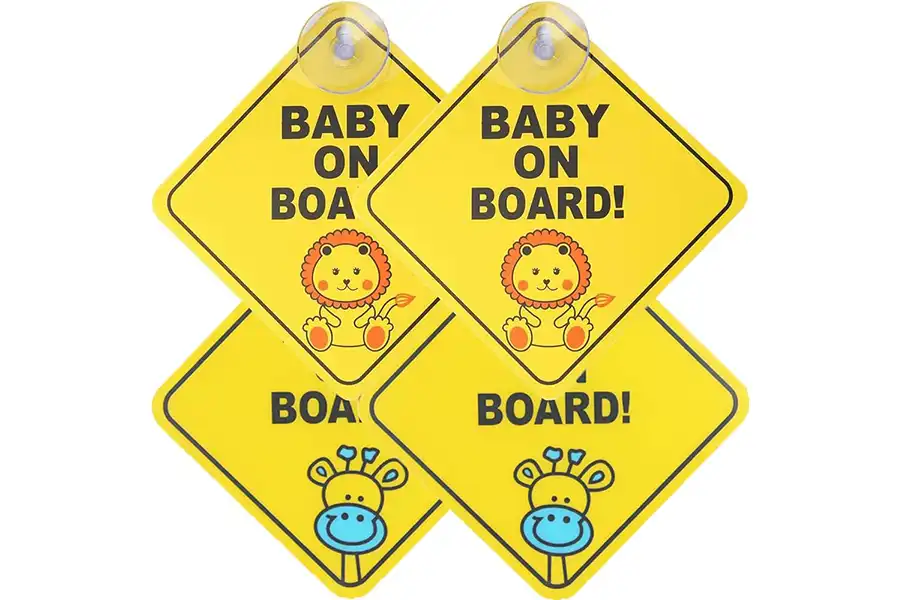 فراتر از مربع زرد کلاسیک، انواع مختلفی از نوشتهها را روی این آویز یا برچسب خواهید دید. عباراتی چون: «شاهزاده خانم در ماشین»، «نوزاد در ماشین»، «بانوی کوچک در ماشین» و غیره.