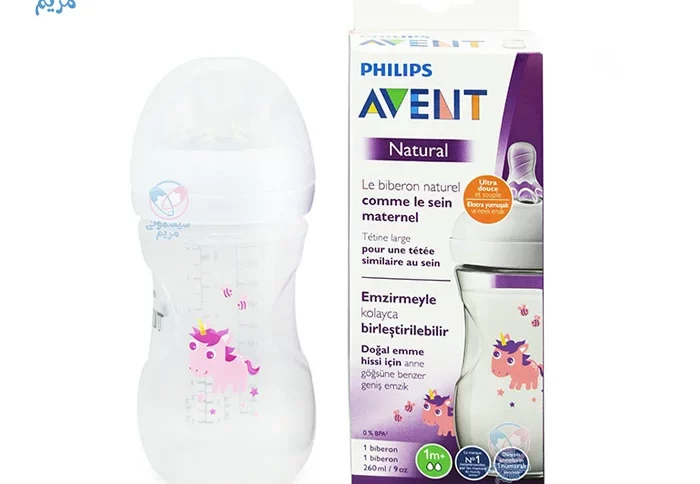 شیشه شیر طلقی 260 میلی لیتر اونت AVENT طرح دار
