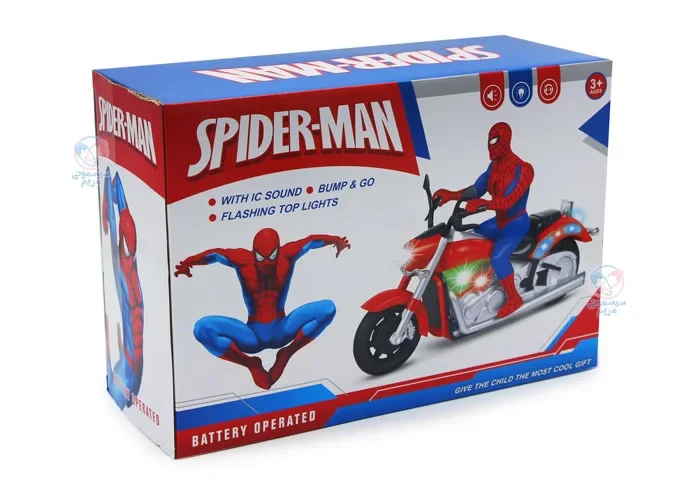 شخصیت مورد علاقه بسیاری از پسرها اسپایدرمن است. در این موتور، از شخصیت اسپایدرمن که محبوب پسران بوده، استفاده شده است. همینطور برای شباهت بیشتر به واقعیت، دکمه خاموش و روشن طراحی شده تا کودکان حس کنند موتور واقعی در دست خود دارند و باعث تقویت قوه تخیل فرزندتان شوند.