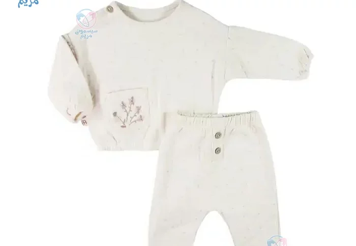 بلوز شلوار آنا بابا Anna Babba طرح گل با طراحی زیبا و رنگ کرمی ملایم، یک انتخاب مناسب برای کودک شماست. طراحی این بلوز و شلوار بسیار ساده و در عین حال شیک است. در قسمت جلویی لباس یک جیب با طرحهای گل ریز وجود دارد که زیبایی خاصی به لباس افزوده است. این لباس دخترانه از جنس نخی تهیه شده و در سایزهای 0، 1 و 2 موجود میباشد و کودکان از بدو تولد تا 9 ماهگی میتوانند از آن استفاده کنند. در ادامه بیشتر با ویژگیهای این محصول آشنا خواهیم شد.