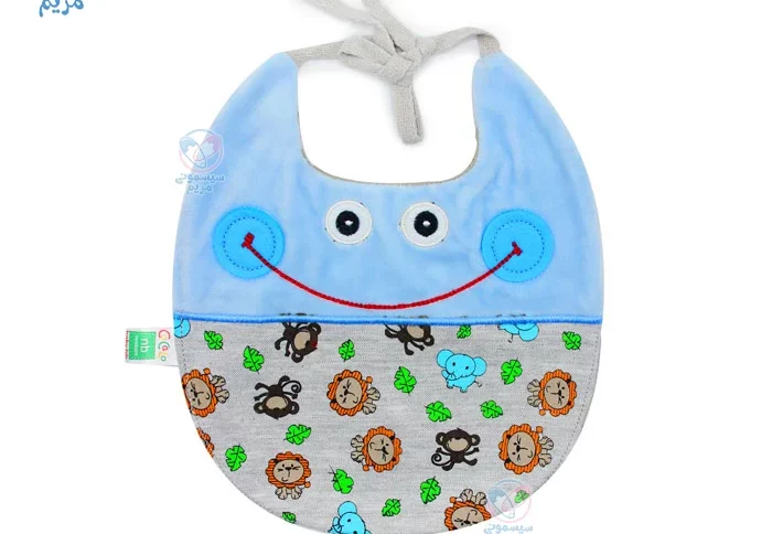 - این پیشبند با بند در پشت گردن نوزاد بسته میشود که امکان تنظیم اندازه را فراهم میکند؛