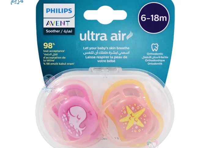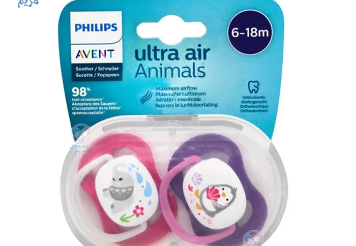 پستانک الترا ایر 6 تا 18 ماه اونت Avent، به عنوان یک محصول باکیفیت، کاربردی و سبک با طرحها و رنگبندیهای فوقالعاده زیبا و متنوع برای پوشش دادن انواع سلیقهها و استفاده برای نوزادان دختر و پسر، در بستهبندیهای ۲ تایی، که خرید آن از نظر اقتصادی برای خانوادهها بسیار بهصرفهتر است، عرضه میشود.