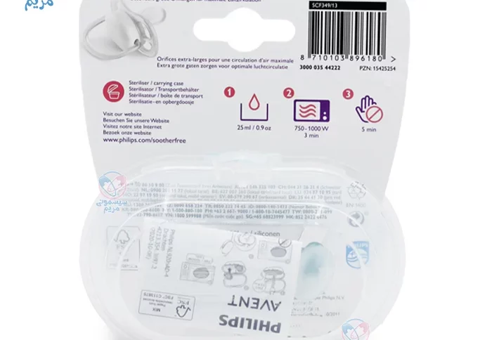 محصول فوق بسیار آسان شسته و ضدعفونی میشود. این محصول با باکس نگهدارندهای همراه است که فقط کافیست پستانک را داخل آن بگذارید، مقداری آب داخلش بریزید و آن را به مدت ۳ دقیقه درون مایکروویو قرار دهید. برای این کار میتوان از روش جوشاندن پستانک در آب جوش و استفاده از دستگاه استریل که راحتترین روش ضدعفونی کردن لوازم تغذیه کودک است نیز استفاده کرد.