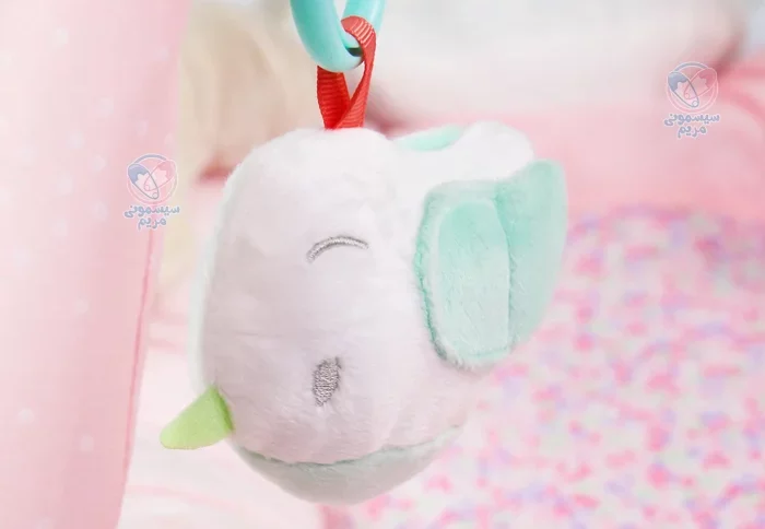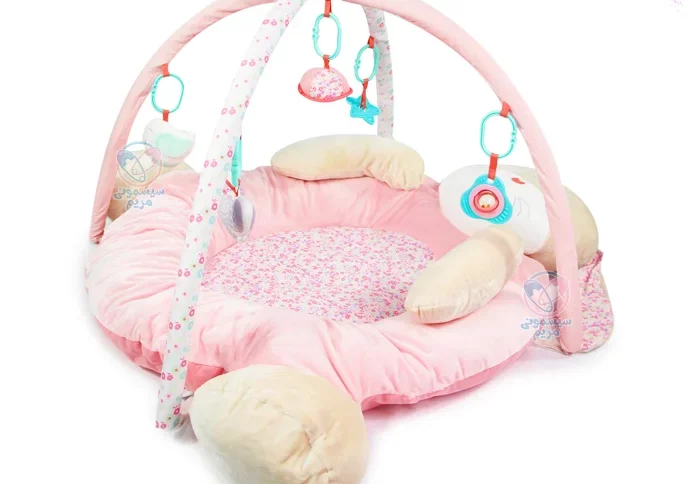 قابل استفاده برای نشستن و بازی نوزاد، دارای آویز، با تشک بسیار نرم و لطیف، دارای 2 کمان و 5 آویز عروسکی، جمع‌شو آسان