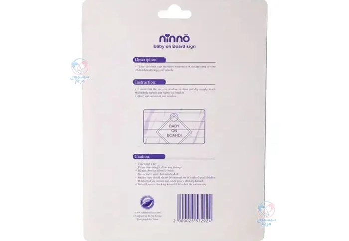 بیبی آن برد baby on board چسبی نینو Ninno، جزو لوازم جانبی حملونقل کودک و نوزاد بوده و جنبه تزیینی دارد. زمانی که این برچسب در محلی مانند شیشه عقب ماشین چسبیده میشود، دیگران را از حضور کودک در ماشین مطلع میکند. در این صورت ایمنی کودک حفظ میشود. با مطالعه کردن این متن در وبسایت سیسمونی مریم، با ویژگیهای دیگر بیبی آن برد آشنا میشوید.