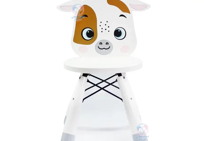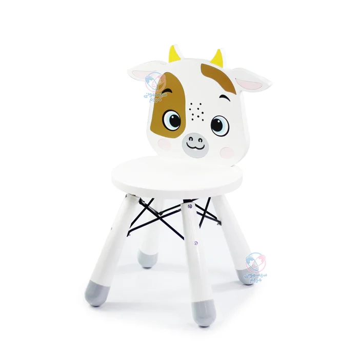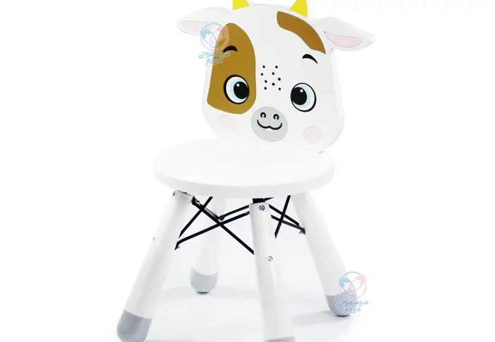 صندلی چوبی کودک طرح گاو دارای طرحی فانتزی و رنگی موردپسند کودکان در گروه سنی 1 تا 7 سال است.