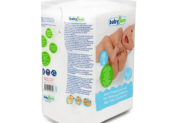 پد پاک کننده کودک بیبی جم Babyjem، از 100% پنبه تولید شده است. پدهای پاککننده، برای پوست کودکان و نوزادان بسیار مفیدند. این 60 عدد پد، به شکل نرم و لطیف طراحی شده تا پوست کودک را به خوبی پاک کند و جایگزینی مناسب لیف برای نوزادان باشد. این محصول برای انواع پوست حساس کودکان و نوزادان طراحی شده است. در ادامه با ما همراه باشید تا بیشتر درباره این پد بهداشتی و ویژگیهای آن بدانید.