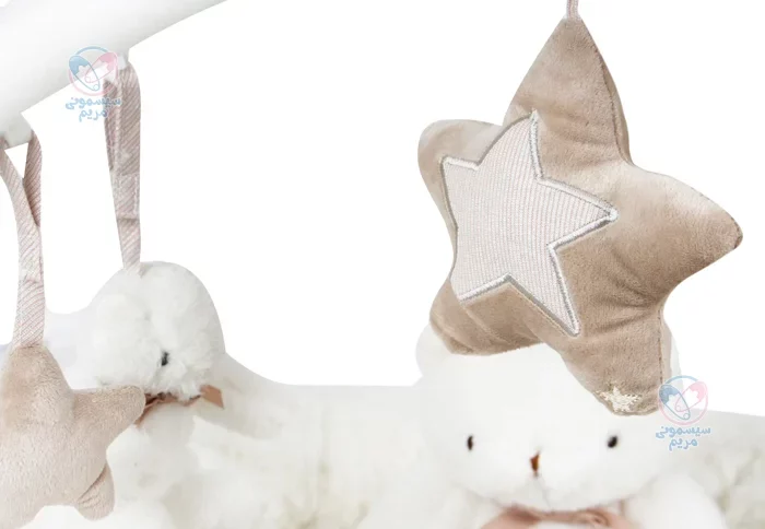 - دارای ۵ اسباببازی آویزان، از جمله آینه و جغجغه برای سرگرمی و تقویت حواس؛