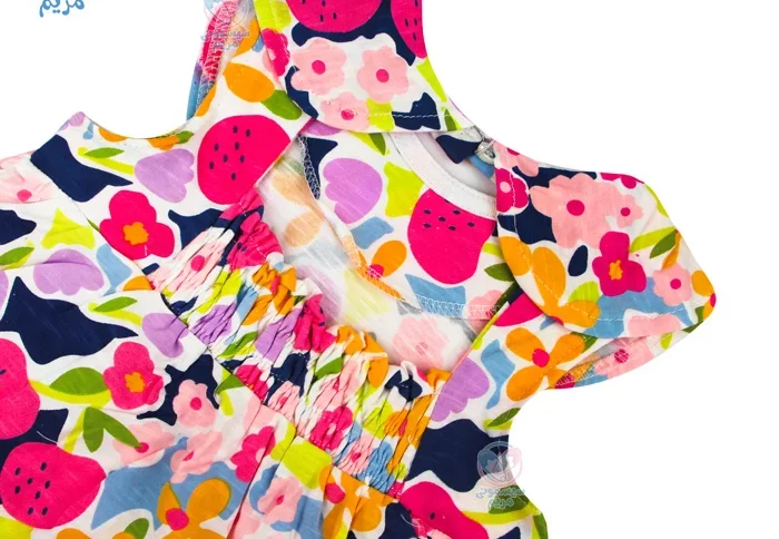 - طراحی زیبا و رنگارنگ: این لباس با طراحی دخترانه و رنگهای شاد، برای مراسم و استفاده روزمره مناسب است؛