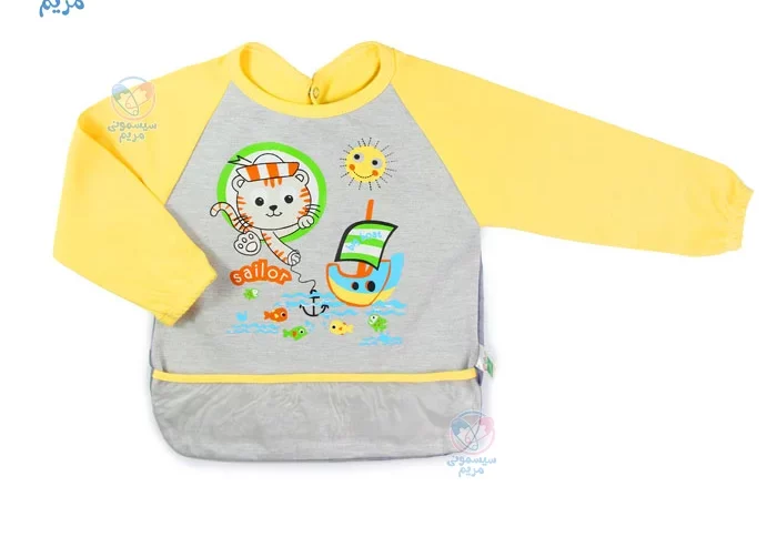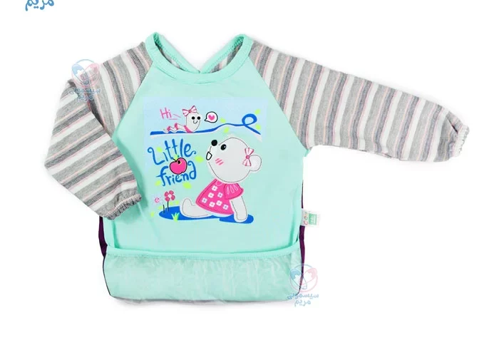 جنس این پیشبند از نخ با پشت مشما است که دو ویژگی مهم را به همراه دارد. اول، آرامش و راحتی کودک در زمان استفاده و دوم، جلوگیری از نفوذ آب و مواد غذایی به لباس اصلی کودکان.