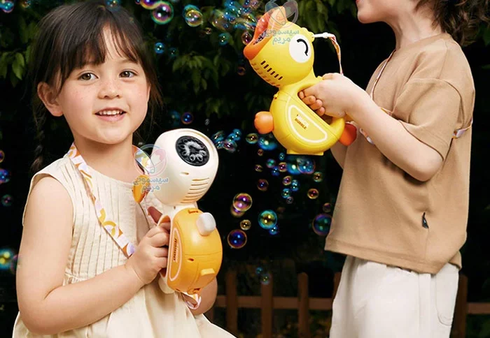 تفنگ حباب ساز DY 913، با طرحهای بامزه و زیبای اردک و سگ در کشور چین تولید شده و به کشورهای دیگر صادر میشود. برای این وسیله، امکاناتی همچون پخش موزیک و چراغهای رنگی در نظر گرفته شده و برای عملکرد خود به 4 عدد باتری نیاز دارد. تفنگ حبابساز از پلاستیک باکیفیت تهیه شده و فاقد مواد مضر bpa است. با مطالعه کردن این متن تا انتها در وبسایت سیسمونی مریم، اطلاعات بیشتری از تفنگ حبابساز کسب خواهید کرد.