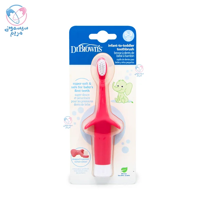 مسواک آموزشی دکتر براون Dr Browns یکی از محصولات بهداشت دهان و دندان کودکان است که توانسته همواره نظر همه را به خود جلب کند. این مسواک زیبا و جذاب برای کودکان سنین 0 تا 3 سالگی مناسب است و در طرحهای مختلفی از جمله زرافه، دایناسور، فلامینگو و.. تولید شده است. استفاده از مسواک آموزشی فواید بسیاری برای کودک شما دارد. دسته این مسواک ارگونومیک طراحی شده و دارای دستهای ضد لغزش با طراحی مناسب برای دستان کوچک کودکان است. برس بسیار نرم و انعطافپذیر این مسواک، کاملا مطابق با دهان و دندان کودک طراحی شده است. در ادامه بیشتر با ویژگیهای این محصول آشنا خواهیم شد.