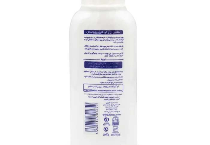 پودر کودک 200 گرم فیروز Firooz یکی از محصولات برند ایرانی فیروز است که با فرمولاسیون ویژه خود، به پیشگیری از ادرار سوختگی، التیام التهابات پوستی و حفظ سلامت پوست نوزادان کمک میکند. این محصول با ترکیبات ملایم و PH سازگار با پوست کودک، گزینهای ایمن و مطمئن برای مراقبت روزانه از نوزادان است. در ادامه بیشتر با ویژگیهای این محصول آشنا خواهیم شد.
