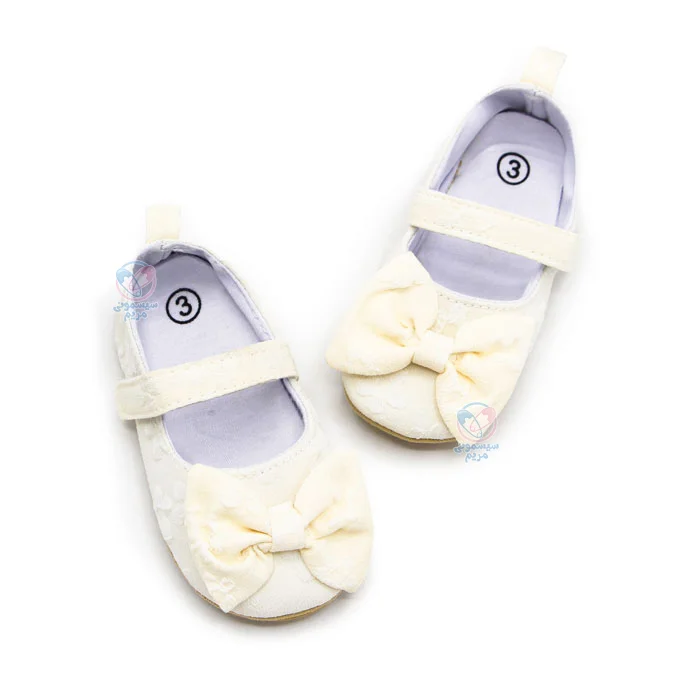 پاپوش دخترونه جلو پاپیونی با مبدأ برند ترکیه، بهدلیل طراحی خاص و رنگ کرم خود، در گروه کفشهای دخترانه محبوب قرار گرفته است. طراحی پاپیون بزرگ در جلوی این پاپوش، جلوهای فانتزی و دلربا به آن میبخشد و باعث میشود کودکان به راحتی جذب آن شوند. نوع بسته شدن این پاپوش چسبی است که به والدین اجازه میدهد به سادگی و راحتی کفش را به پای کودک خود بپوشانند و درآورند. در ادامه بیشتر با ویژگیهای این محصول آشنا خواهیم شد.