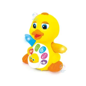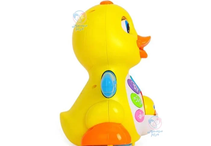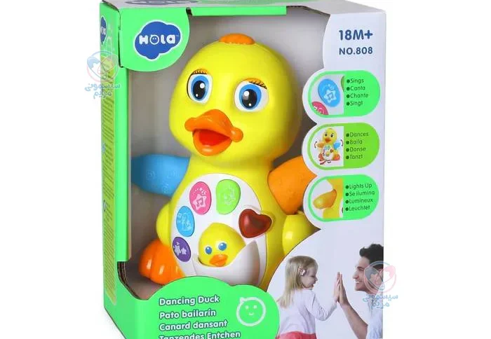 | سایر توضیحات | محصولی تهیه شده از پلاستیک درجه یک ABS، با قابلیت پخش موزیکهای متنوع، کم یا زیاد کردن صدا و امکان تغییر موزیک، در این اسباببازی حرکت دستهای اردک با رقص نور همراه است. |