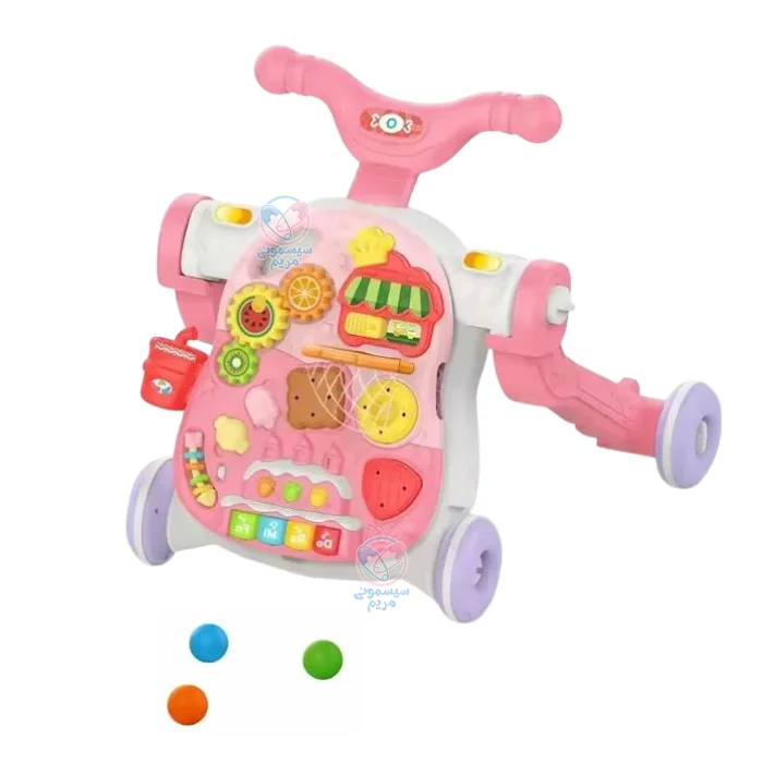 واکر ۵ کاره هانگر Hunger 0813 با رنگهای شاد و جذاب طراحی شده است که نه تنها نظر کودکان را به خود جلب میکند، بلکه به آموزش مفاهیمی چون اعداد، رنگها و اشکال نیز کمک میکند.