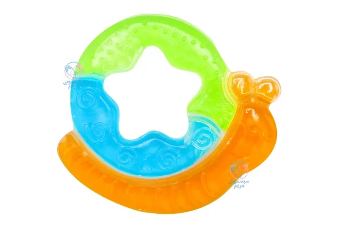 - طراحی حلزونی شکل با رنگهای شاد: شکل فانتزی حلزون و رنگبندی متنوع، باعث میشود نوزاد به استفاده از دندانگیر علاقهمند شود؛