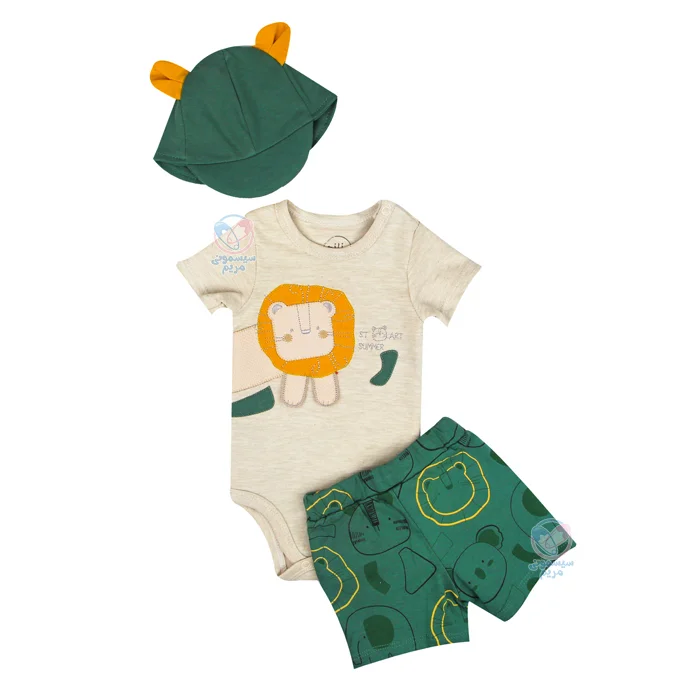 دارای بادی آستین کوتاه طرح‌دار, دارای شلوارک سبز, دارای کلاه نقابدار طرح‌دار, نرم و باکیفیت