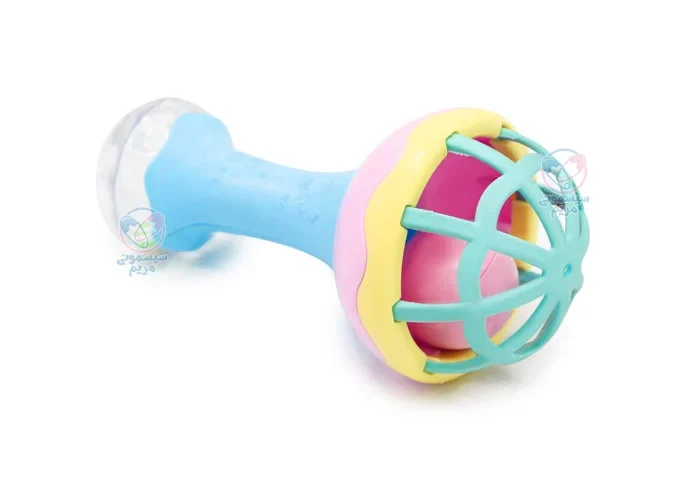 جغجغه دمبلی با شکل و رنگهایش توجه نوزادان را به خود جلب میکند. این محصول به دمبل شباهت دارد، به راحتی در دست دلبندتان قرار میگیرد و کودک میتواند بازی با جغجغه را یاد بگیرد. بازی با این محصول در افزایش مهارتهای دستی و انگشتی و هماهنگی دست و چشم و شنوایی کودک بسیار حائز اهمیت است.