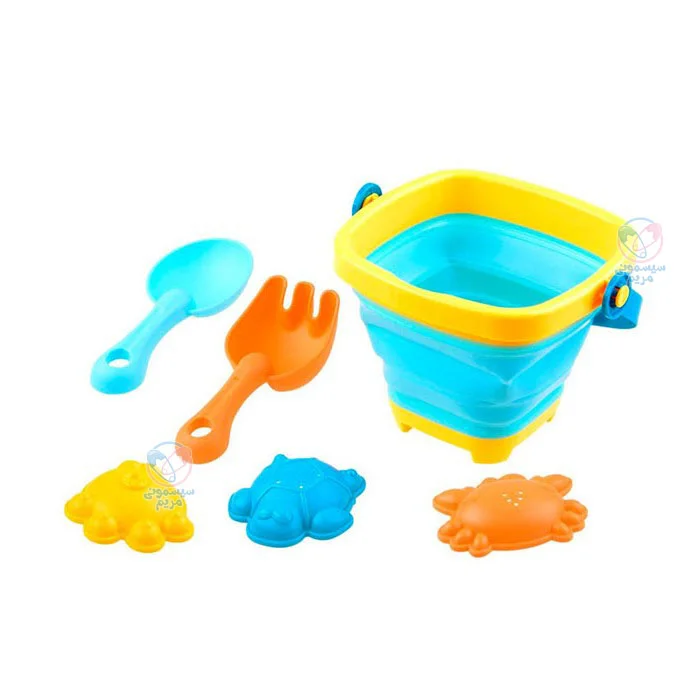 محصولی با ۳ قالب به شکل خرچنگ، ماهی و لاک‌پشت، سطل تاشو و ابزار ماسه‌برداری