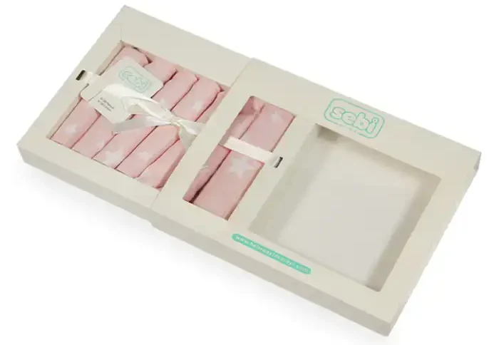 دستمال دست و صورت سبی Sebi، دارای جنس پنبه باکیفیت بوده و در کشور ترکیه با طرحهای متنوع (ابر و ماه و ستاره، توپ توپی و راه راه، توپ و توپی و گل، ساده سفید، ستاره رنگی، ستاره سفید و کاج و گل) با قدرت جذب بالای آب و رطوبت برای پوست حساس کودک و نوزاد تولید میشود. این محصول ضد حساسیت و ضد آلرژی است. در وبسایت سیسمونی مریم، اطلاعات بیشتری از دستمال کسب خواهید کرد.