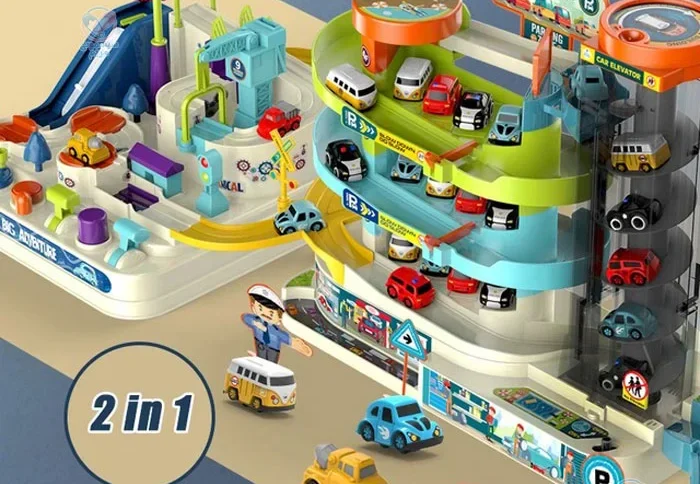 | سایر توضیحات | توانایی بازی بدون باتری، دارای ماشینهای کارتونی، مناسب برای توسعه و رشد تواناییهای کودک, شامل پارکینگ طبقاتی و وسایلی مانند ماشین، تابلو علائم راهنمایی و رانندگی، هلیکوپتر و….،, شامل مجموعه گستردهای که با سرهم کردن آن یک پارکینگ زیبا با قابلیتهای بسیار زیبا ایجاد میشود |