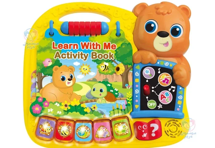 | سایر توضیحات | دکمه را در 3 حالت مختلف برای حروف انگلیسی و اسم حیوانات و صدای حیوانات میتوان تنظیم کرد و با ورق زدن دفترچه و فشاردادن دکمههای زیر دفترچه صداهای مختلف را شنید |