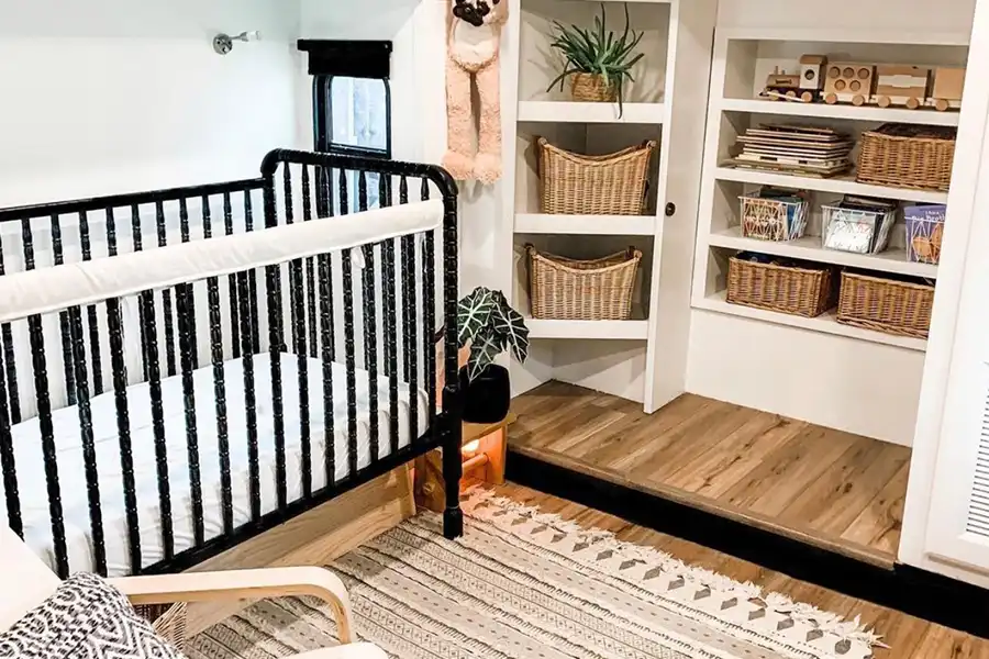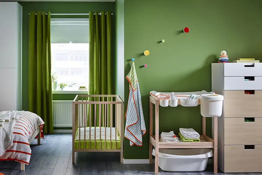 همچنین قبل از خرید تخت و کمد نوزاد، ابتدا ابعاد اتاق را بررسی کنید! توصیه میشود نوزاد در 6 ماه اول با والدین خود در یک اتاق بخوابد. برنامهریزی کنید که چگونه این کار را انجام دهید و ببینید آیا تخت نوزاد در اتاق شما و اتاق نوزاد جا میشود؟ همچنین، تخت نوزاد باید برای تعویض پوشک نیز راحت باشد و برای ایمنی، در نزدیکی منابع گرما، پنجرهها و اشیاء خطرناک قرارنگیرد.